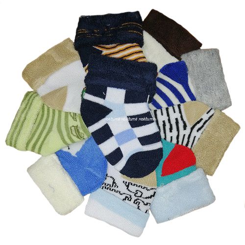 В упаковке 12 пар одного размера, разного рисунка и цвета.